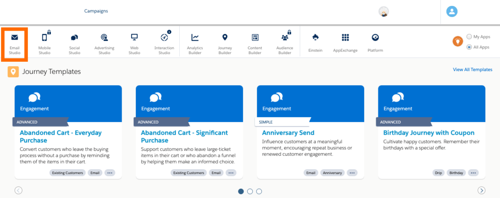 Email Studio in Salesforce Marketing Cloud is the leading email marketing platform for businesses. It allows users to segment customer data and build 1-to-1 marketing campaigns, engaging customers at every touch point of their buying cycle.